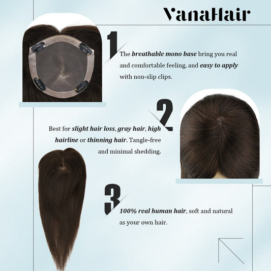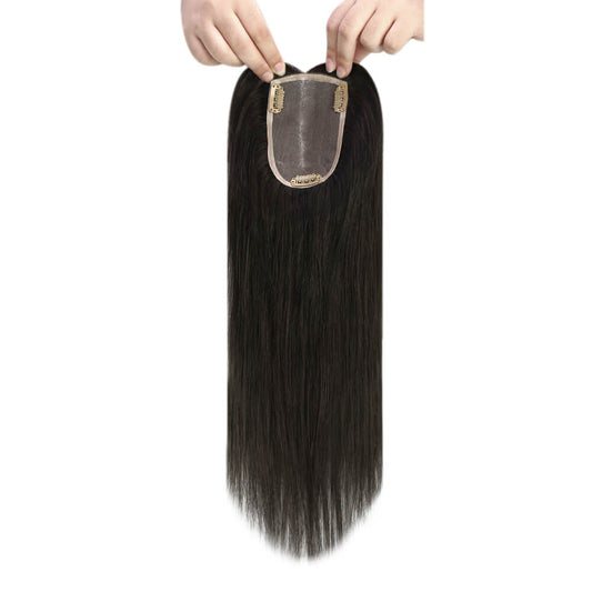 3*5inch Human Hair Topper For Women Invisible Darkest Brown (#2)