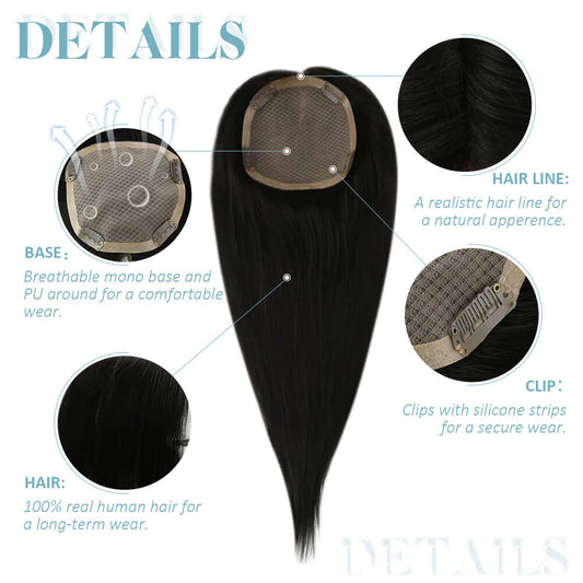 3*5inch Mono Hair Topper Remy Human Hair Natural Black (#1B)