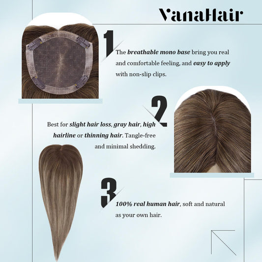 3*5inch Mono Hair Topper Remy Human Hair Balayage Brown (#4/27/4)