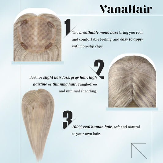 3*5inch Remy Human Hair Topper Invisible Platinum Blonde (#60)