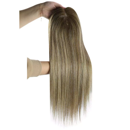 Virgin Hair Topper for Short Hair Balayage Brown Mix Blonde #4/27/4