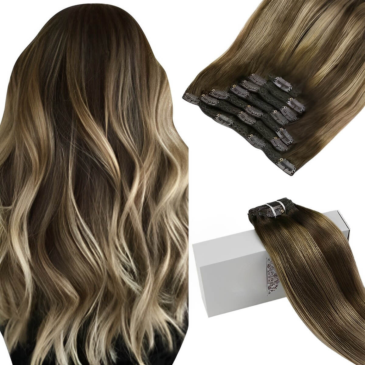 Remy Real Clip In Human hair Extensions Balayage Color (#4/27/4)
