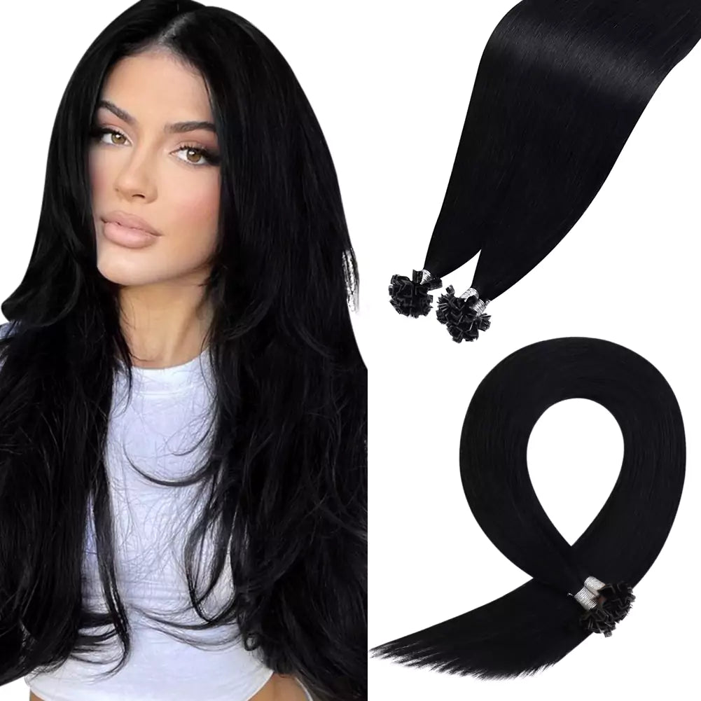 Virgin Keratin Hair Extensions K Tip Human Hair Extensions Jet Black #1