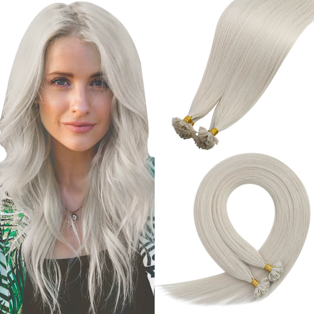 Virgin K Tip Hair Straight Human Hair Extensions White Blonde #1000